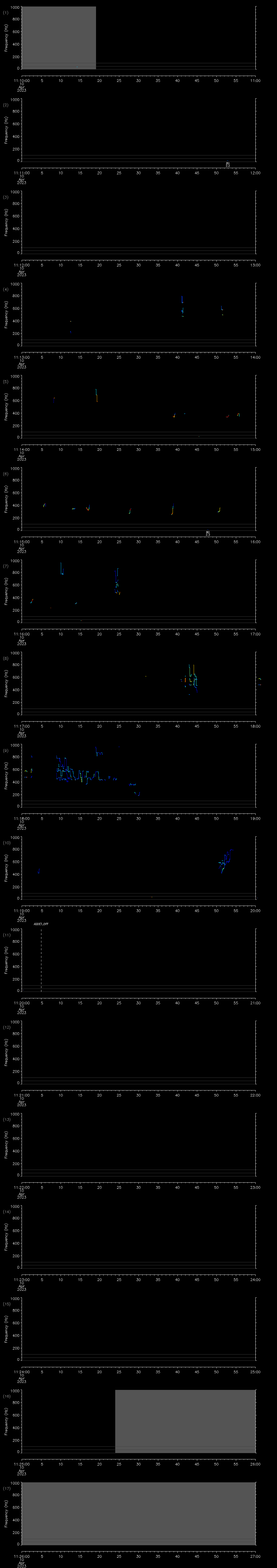 Pitch tracks shown for calls 11 dB above background or higher