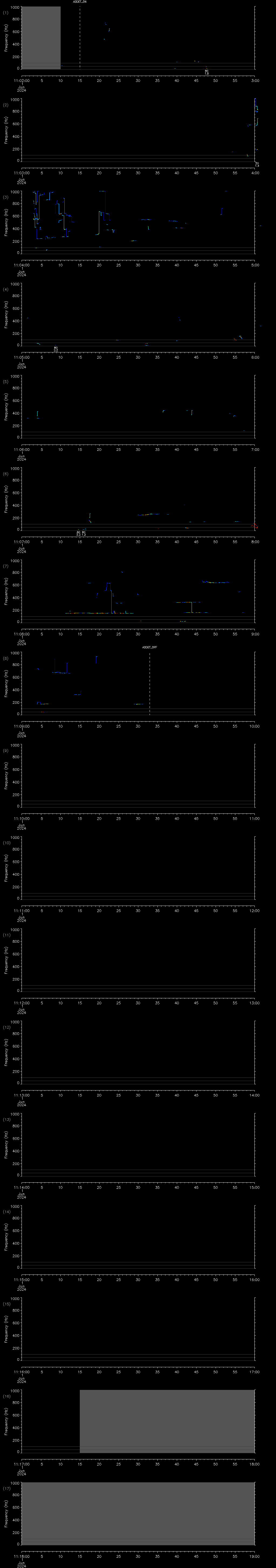 Pitch tracks shown for calls 11 dB above background or higher