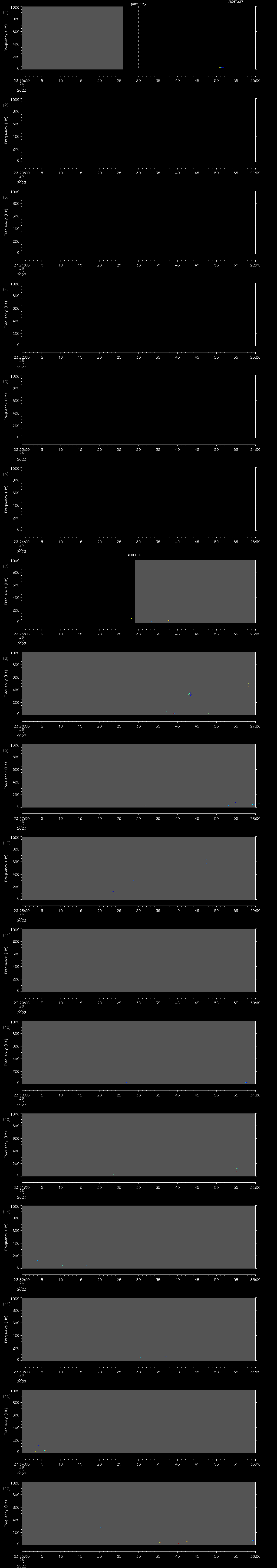 - MUTEON: the hydrophone is muted to assess system noise and to provide a time mark in the audio recording