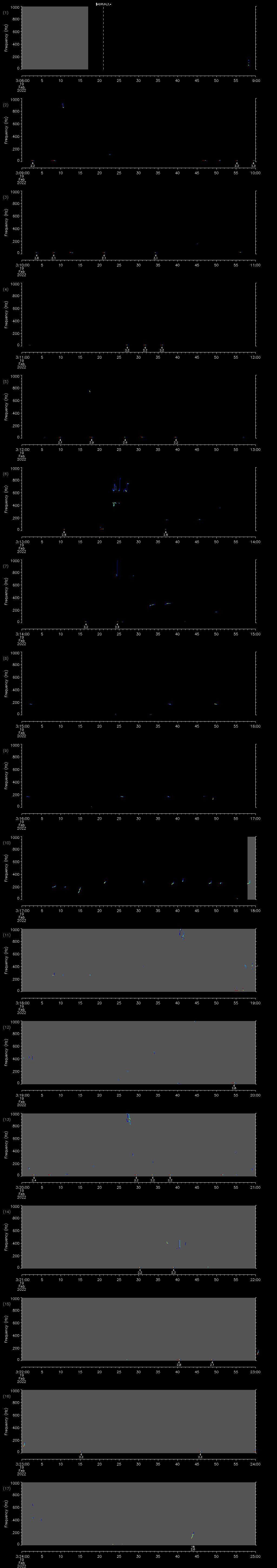 | Date/time | Sei whale | Fin whale | Right whale | Humpback whale | Other | Duration |