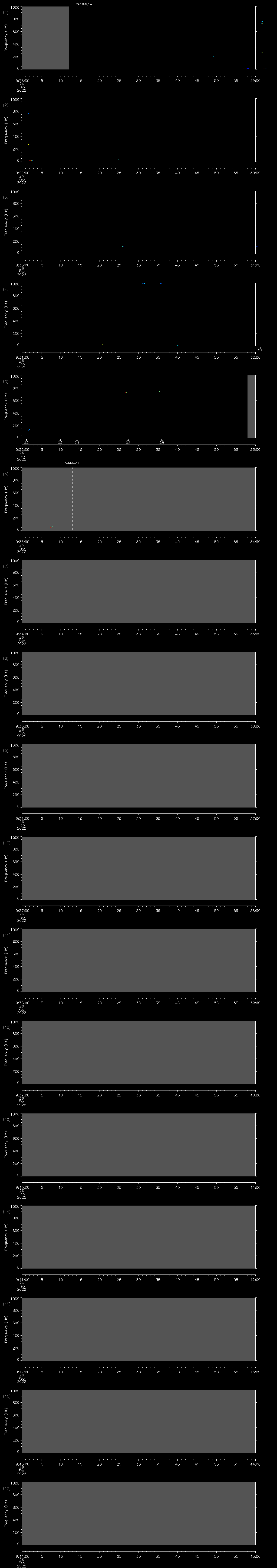 - MUTEON: the hydrophone is muted to assess system noise and to provide a time mark in the audio recording