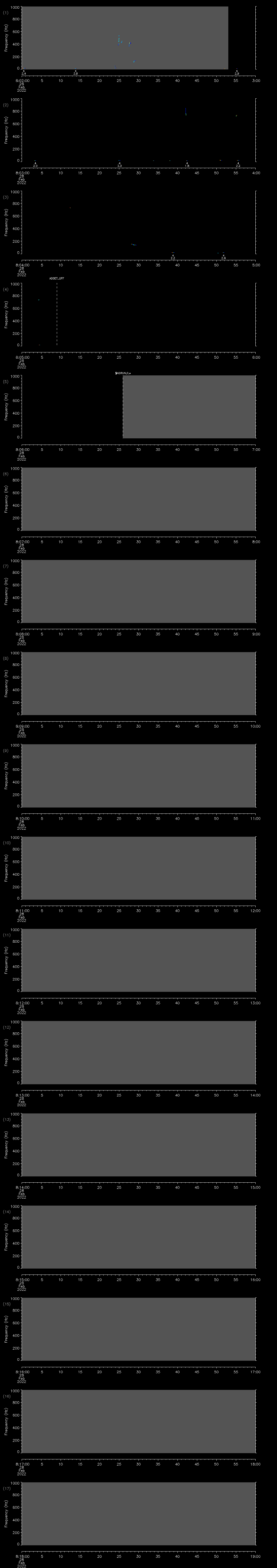- MUTEON: the hydrophone is muted to assess system noise and to provide a time mark in the audio recording