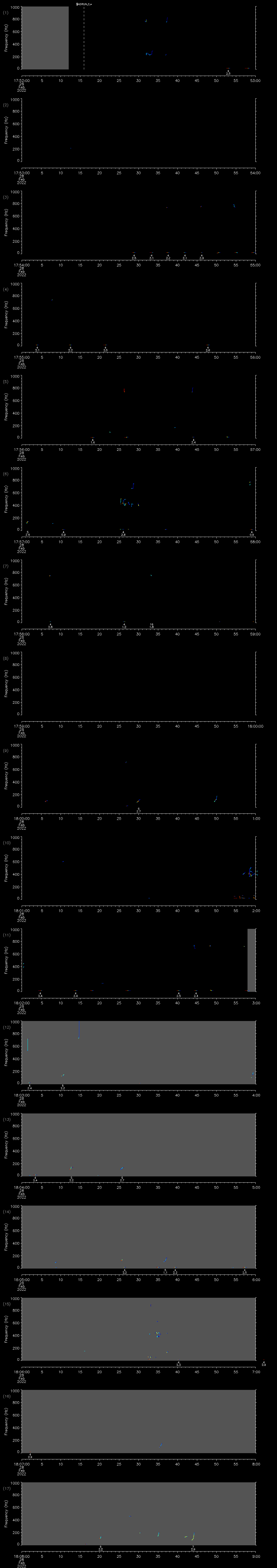 | Date/time | Sei whale | Fin whale | Right whale | Humpback whale | Other | Duration |