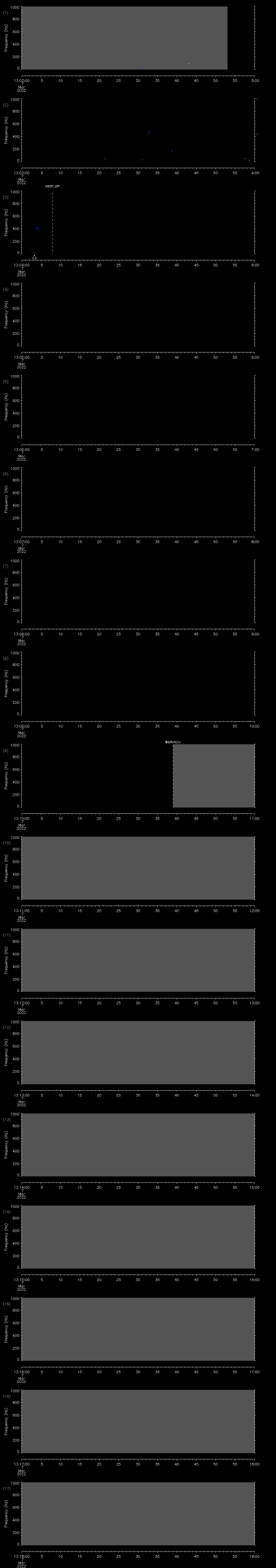 - MUTEON: the hydrophone is muted to assess system noise and to provide a time mark in the audio recording