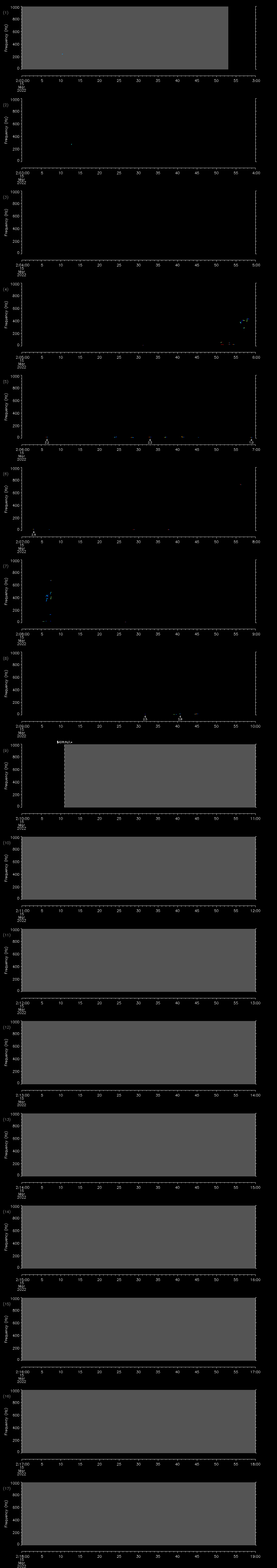 | Date/time | Sei whale | Fin whale | Right whale | Humpback whale | Other | Duration |