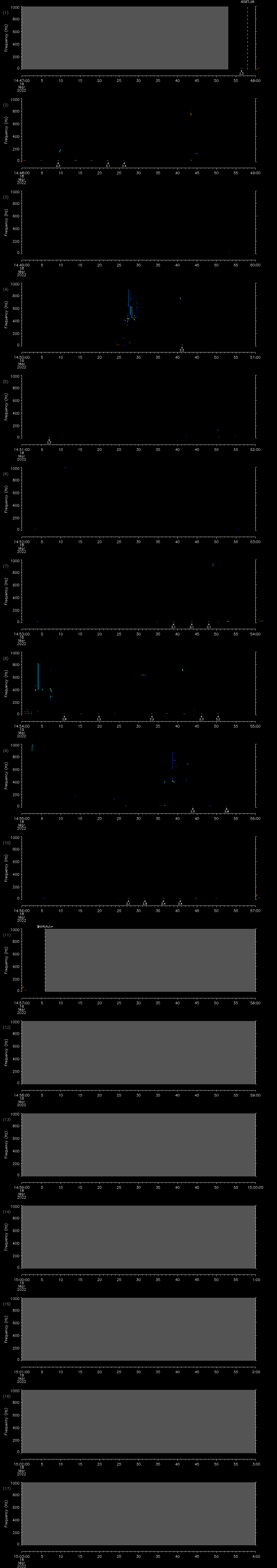 - MUTEON: the hydrophone is muted to assess system noise and to provide a time mark in the audio recording