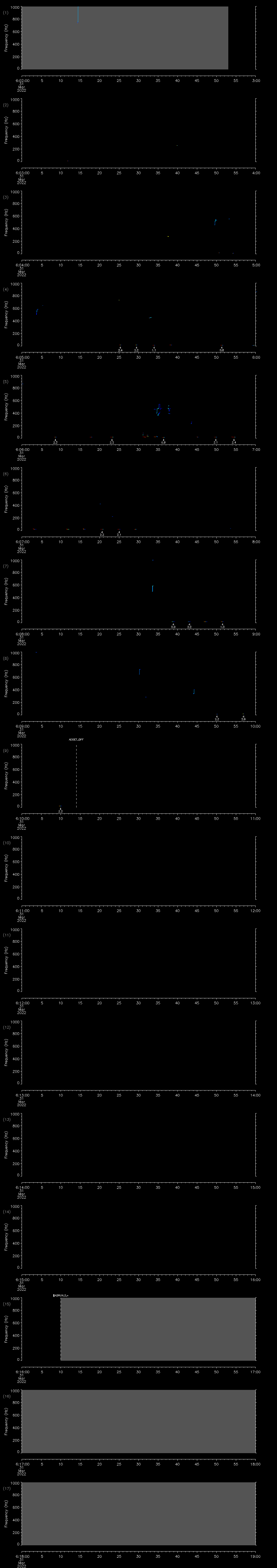 - MUTEON: the hydrophone is muted to assess system noise and to provide a time mark in the audio recording