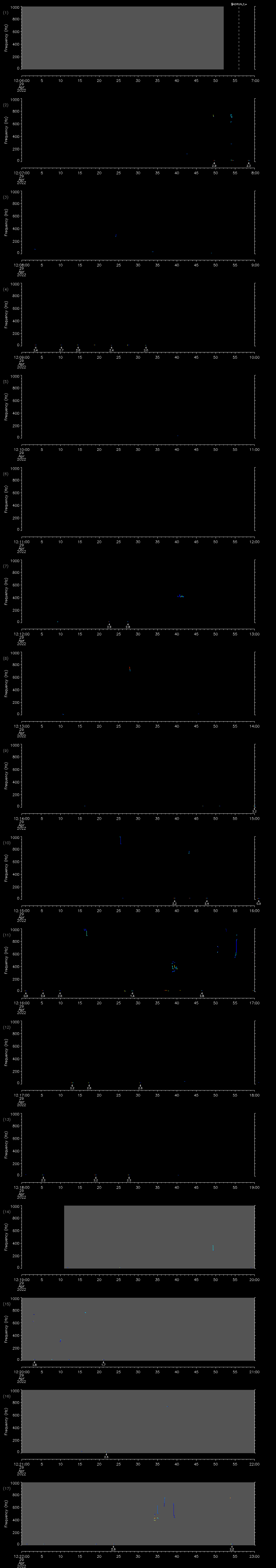 | Date/time | Sei whale | Fin whale | Right whale | Humpback whale | Other | Duration |