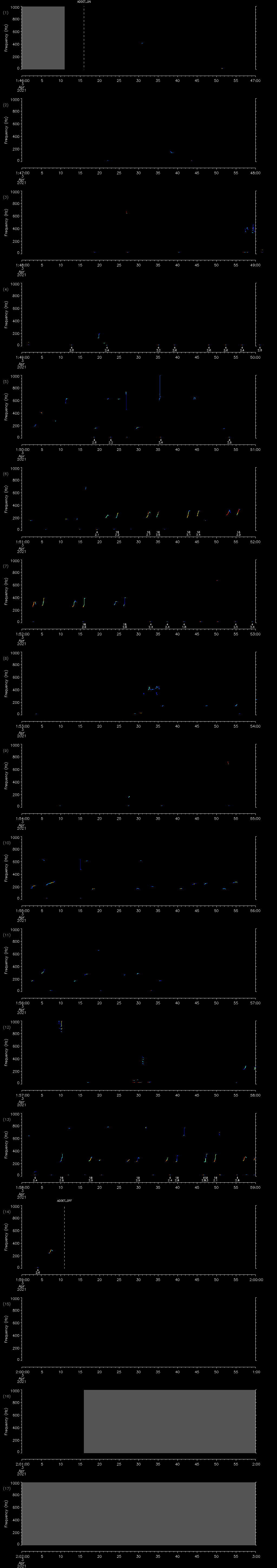 - MUTEON: the hydrophone is muted to assess system noise and to provide a time mark in the audio recording
