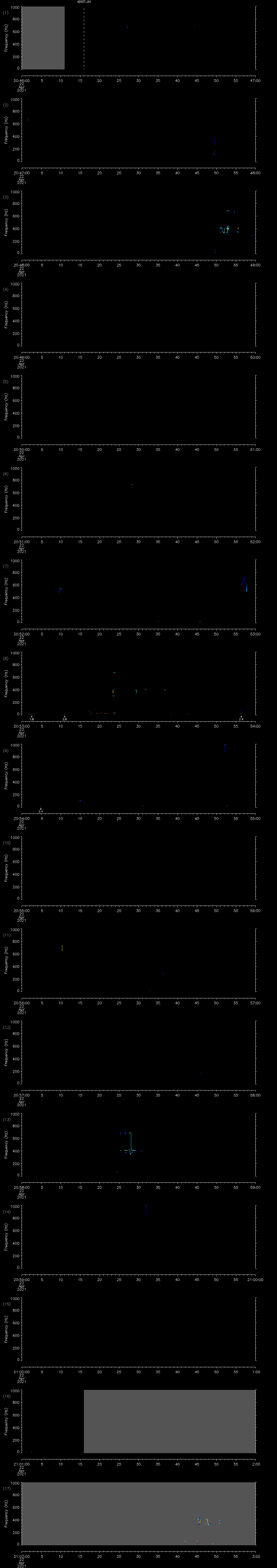 - MUTEON: the hydrophone is muted to assess system noise and to provide a time mark in the audio recording