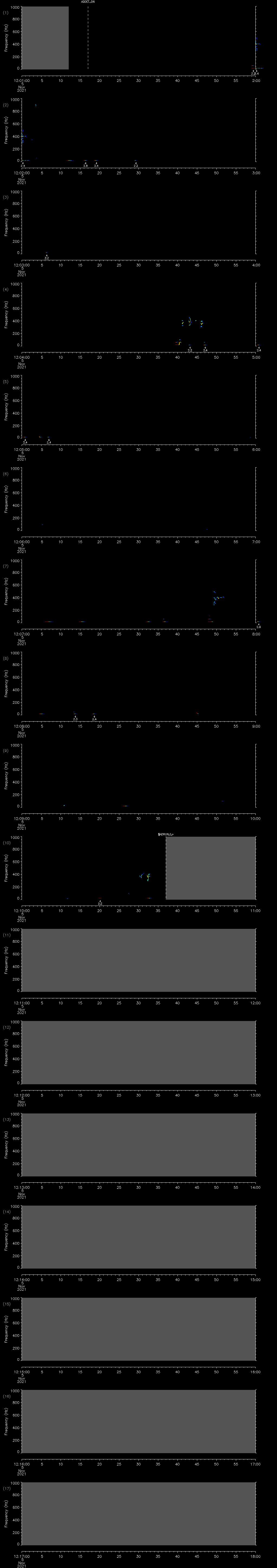 - MUTEON: the hydrophone is muted to assess system noise and to provide a time mark in the audio recording