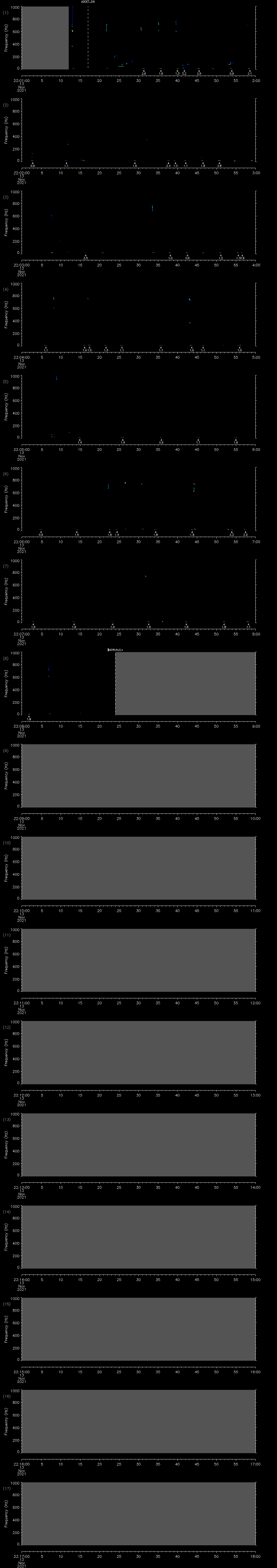 - MUTEON: the hydrophone is muted to assess system noise and to provide a time mark in the audio recording