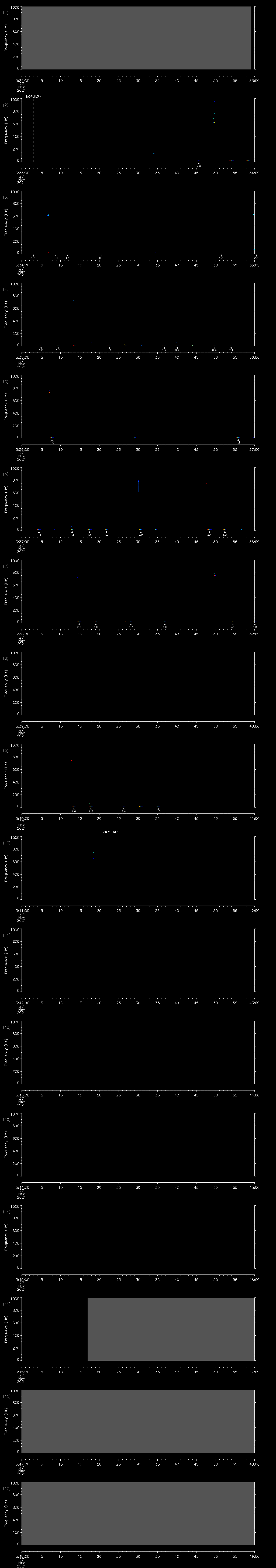 - MUTEON: the hydrophone is muted to assess system noise and to provide a time mark in the audio recording