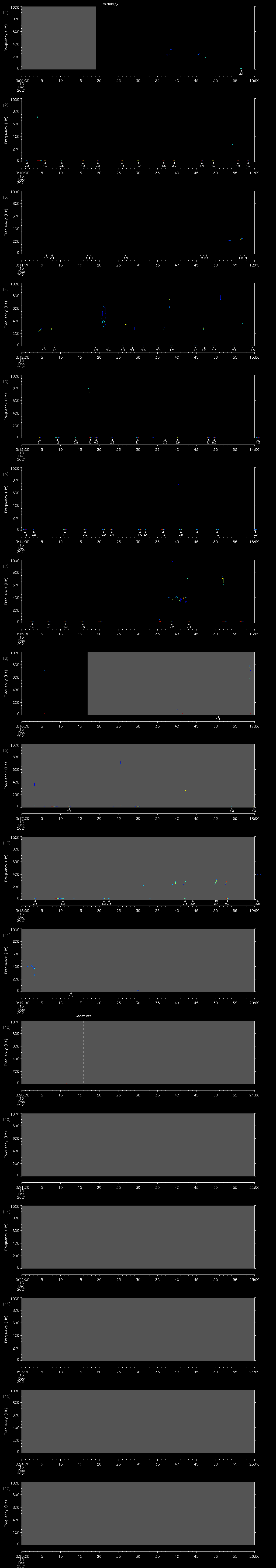 - MUTEON: the hydrophone is muted to assess system noise and to provide a time mark in the audio recording