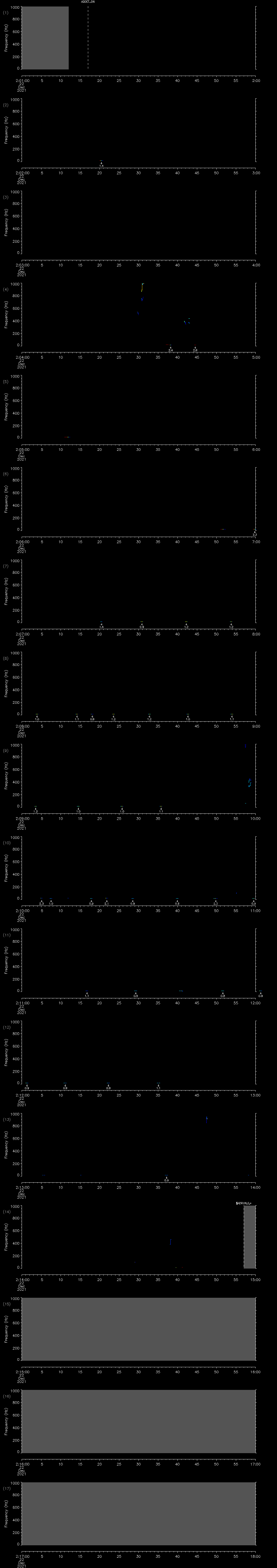 - MUTEON: the hydrophone is muted to assess system noise and to provide a time mark in the audio recording