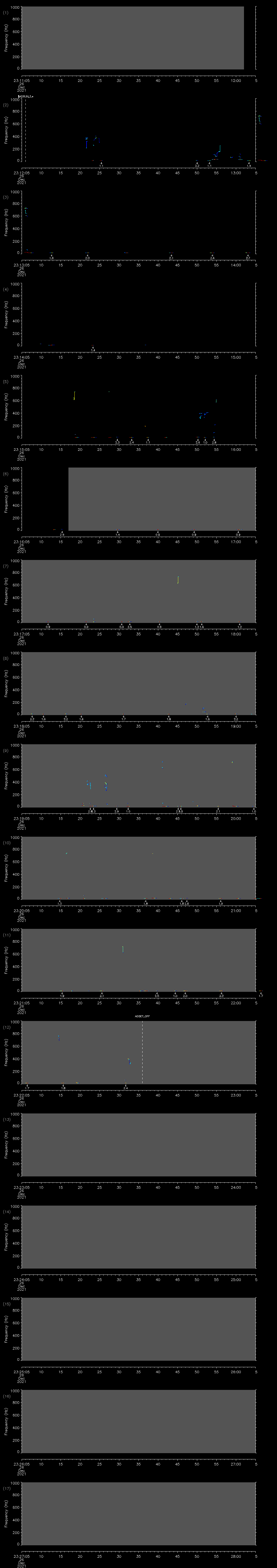 - MUTEON: the hydrophone is muted to assess system noise and to provide a time mark in the audio recording