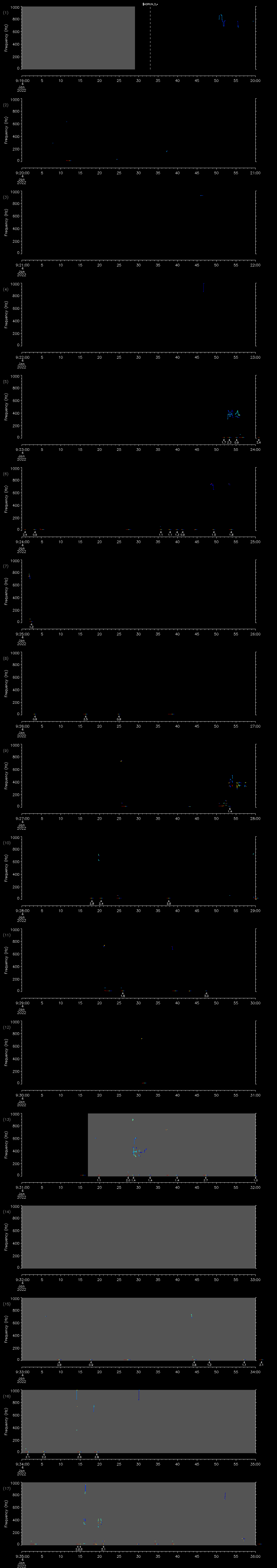 - MUTEON: the hydrophone is muted to assess system noise and to provide a time mark in the audio recording