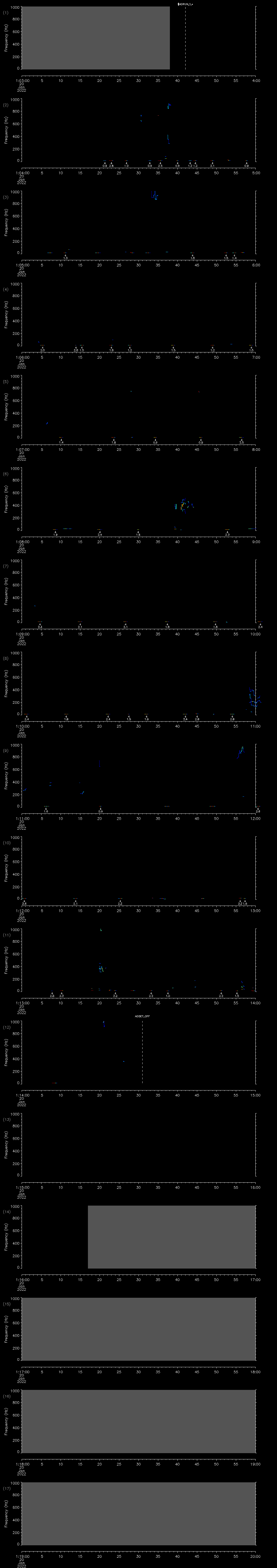 - MUTEON: the hydrophone is muted to assess system noise and to provide a time mark in the audio recording