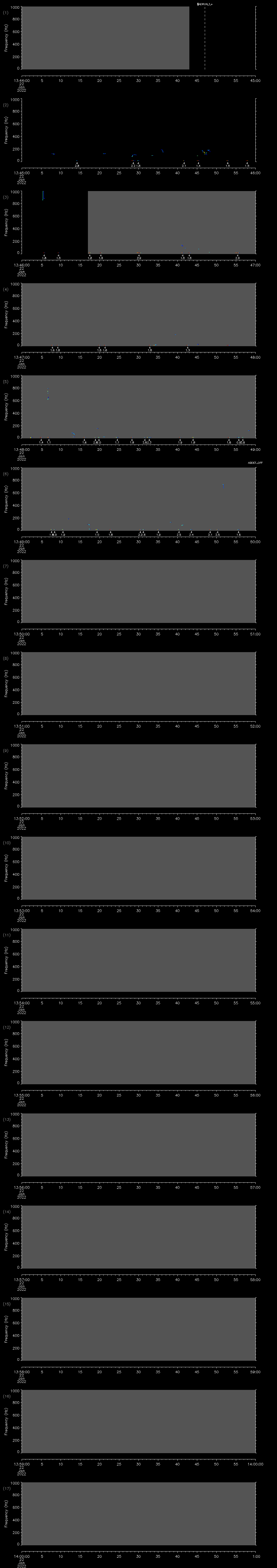 - MUTEON: the hydrophone is muted to assess system noise and to provide a time mark in the audio recording