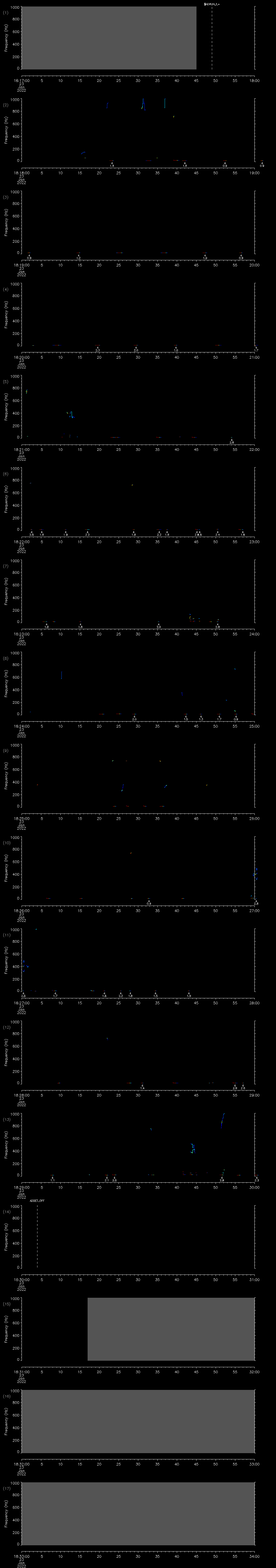 - MUTEON: the hydrophone is muted to assess system noise and to provide a time mark in the audio recording