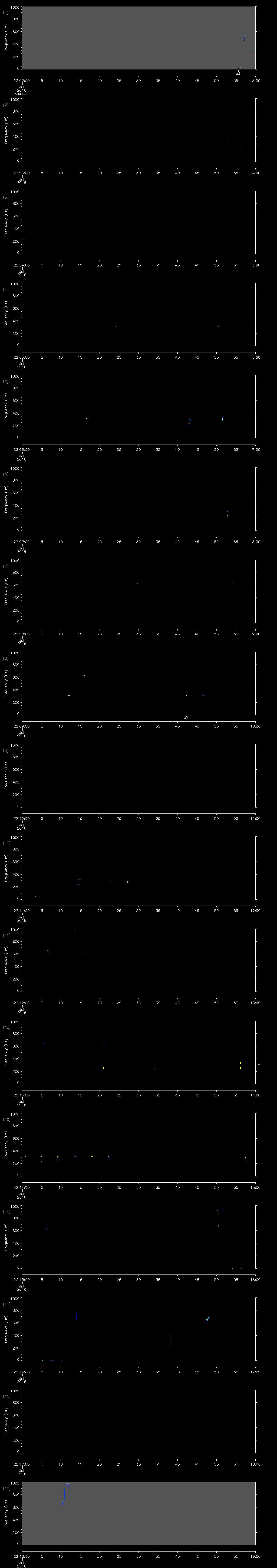 | Date/time | Sei whale | Fin whale | Right whale | Humpback whale | Other | Duration |