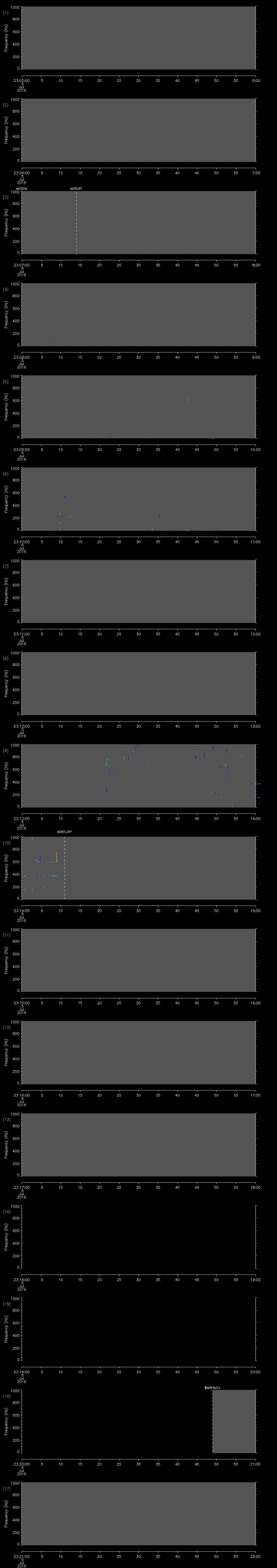 - MUTEON: the hydrophone is muted to assess system noise and to provide a time mark in the audio recording