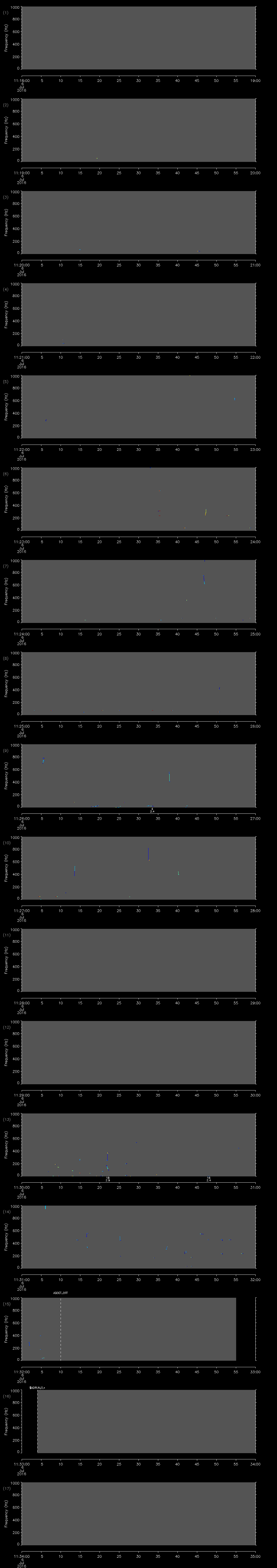 - MUTEON: the hydrophone is muted to assess system noise and to provide a time mark in the audio recording