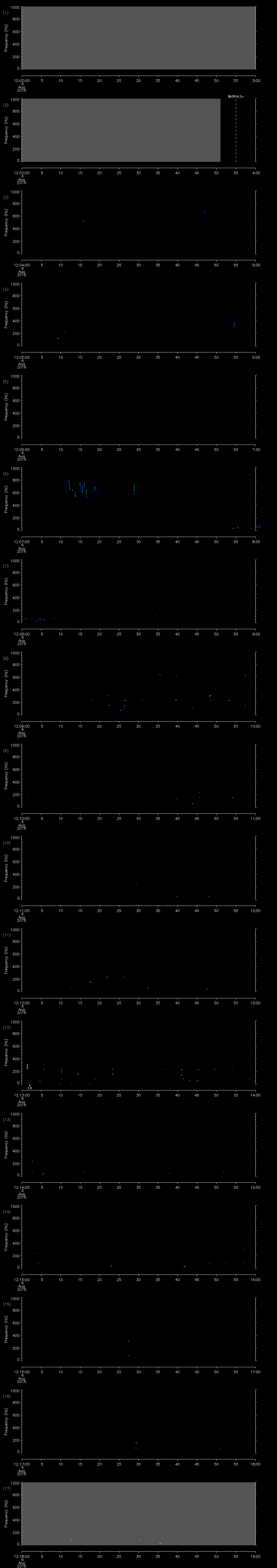 | Date/time | Sei whale | Fin whale | Right whale | Humpback whale | Other | Duration |