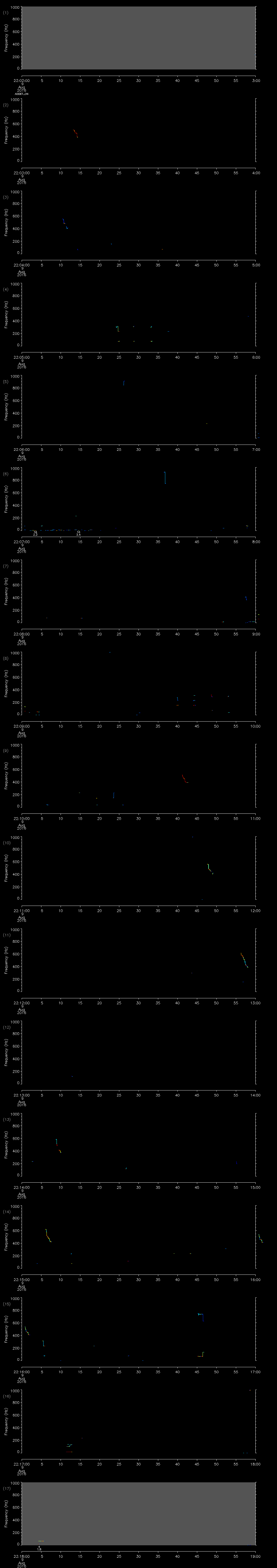 | Date/time | Sei whale | Fin whale | Right whale | Humpback whale | Other | Duration |