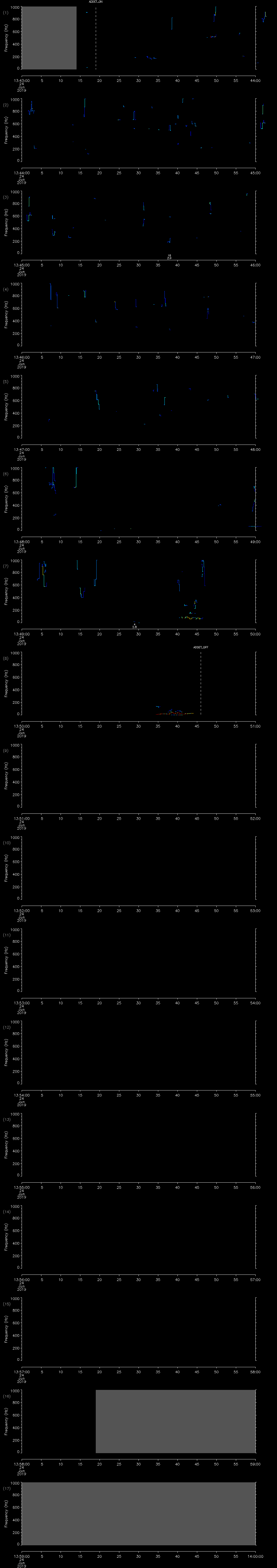 - MUTEON: the hydrophone is muted to assess system noise and to provide a time mark in the audio recording