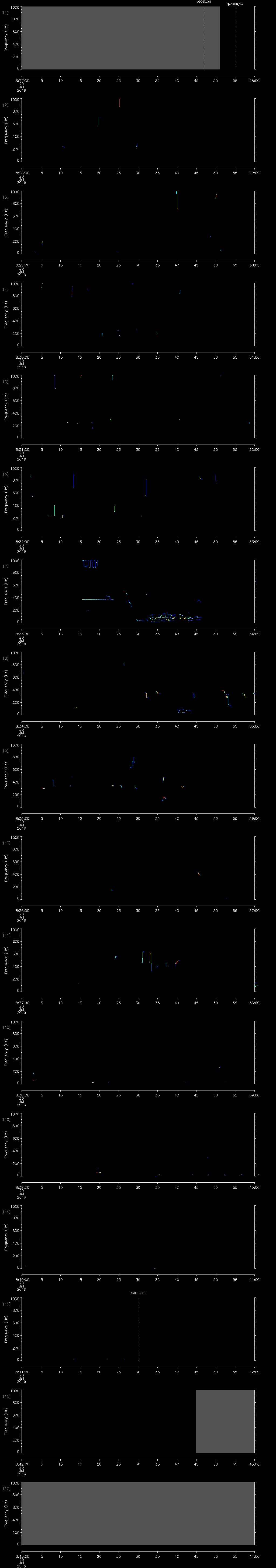 - MUTEON: the hydrophone is muted to assess system noise and to provide a time mark in the audio recording