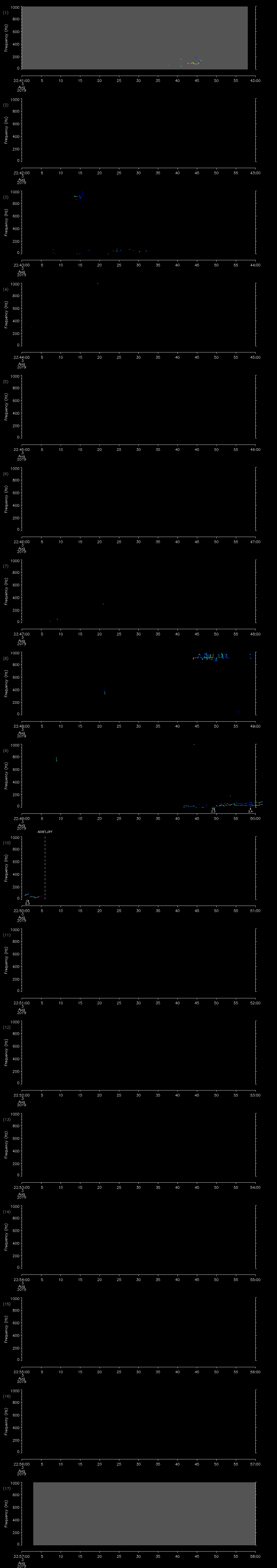 - MUTEON: the hydrophone is muted to assess system noise and to provide a time mark in the audio recording
