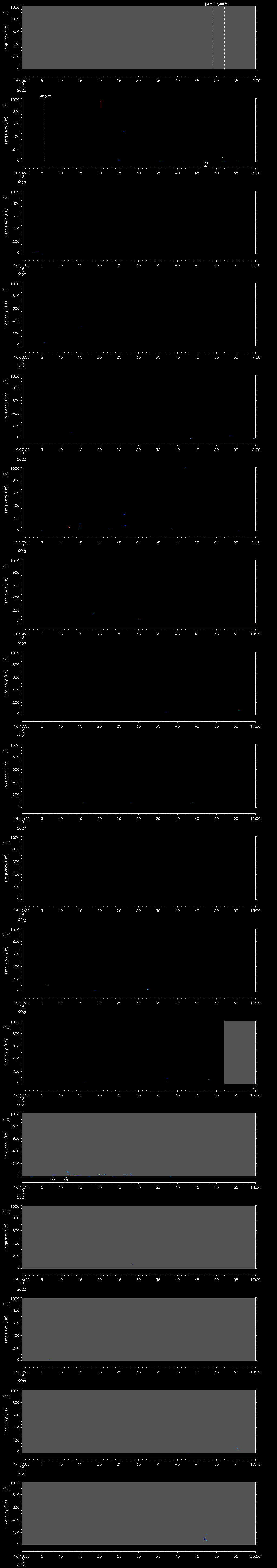 - MUTEON: the hydrophone is muted to assess system noise and to provide a time mark in the audio recording
