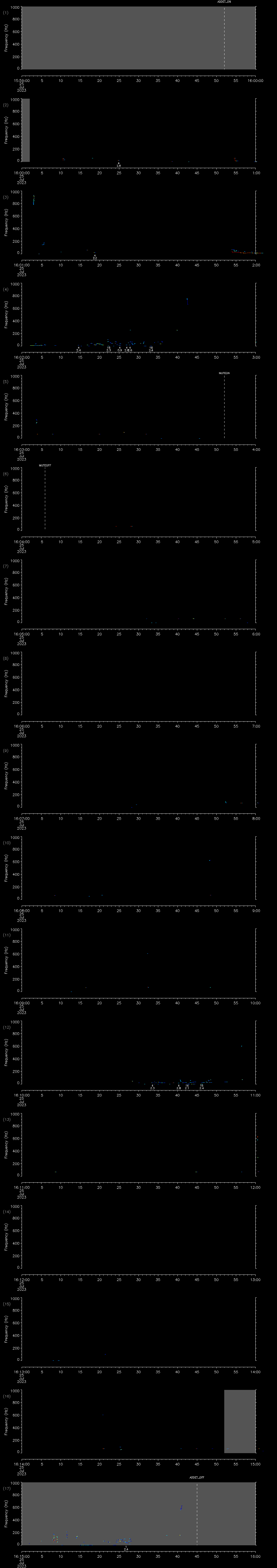- MUTEON: the hydrophone is muted to assess system noise and to provide a time mark in the audio recording