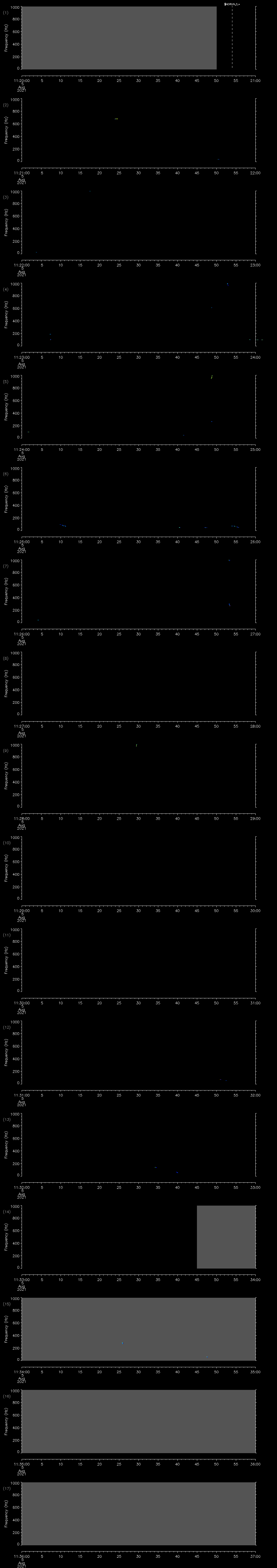 - MUTEON: the hydrophone is muted to assess system noise and to provide a time mark in the audio recording