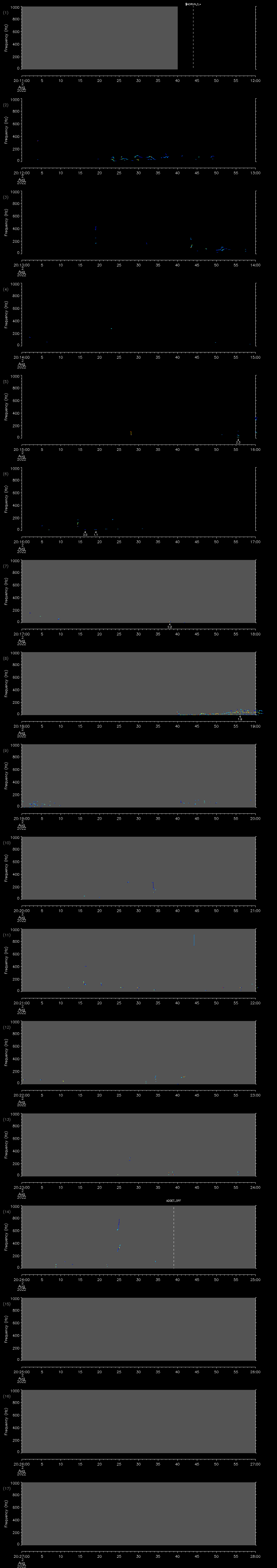 - MUTEON: the hydrophone is muted to assess system noise and to provide a time mark in the audio recording
