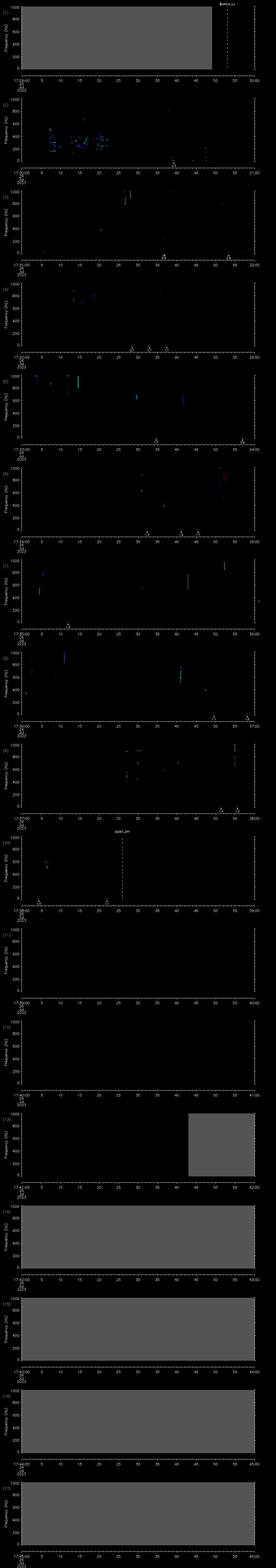 - MUTEON: the hydrophone is muted to assess system noise and to provide a time mark in the audio recording