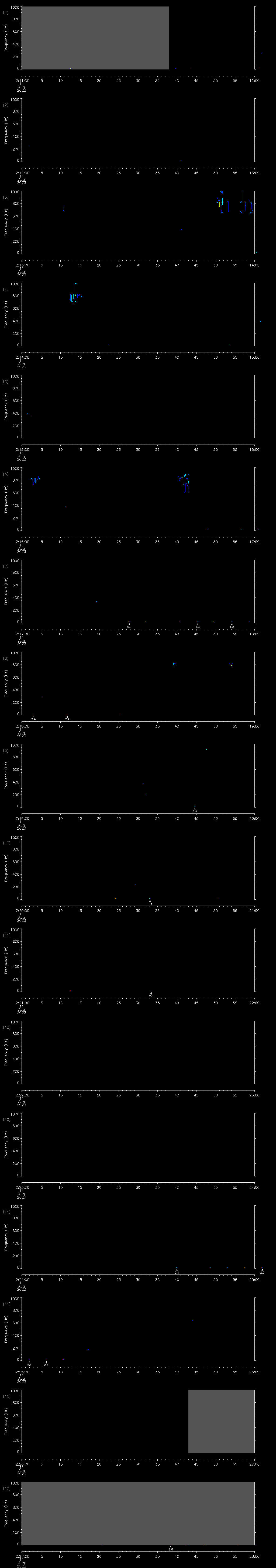 | Date/time | Sei whale | Fin whale | Right whale | Humpback whale | Other | Duration |
