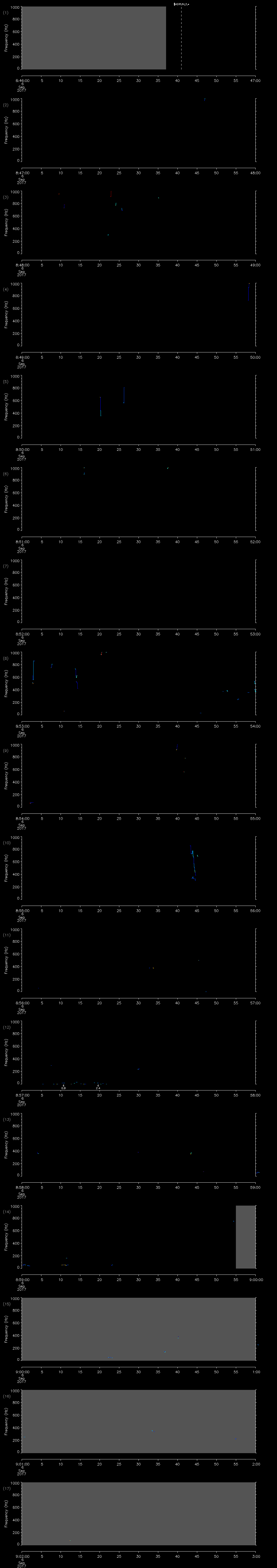 | Date/time | Sei whale | Fin whale | Right whale | Humpback whale | Other | Duration |