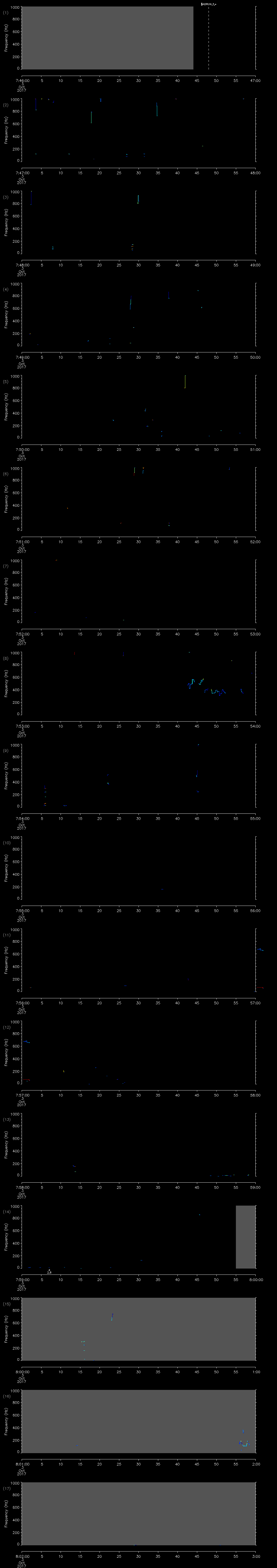 | Date/time | Sei whale | Fin whale | Right whale | Humpback whale | Other | Duration |