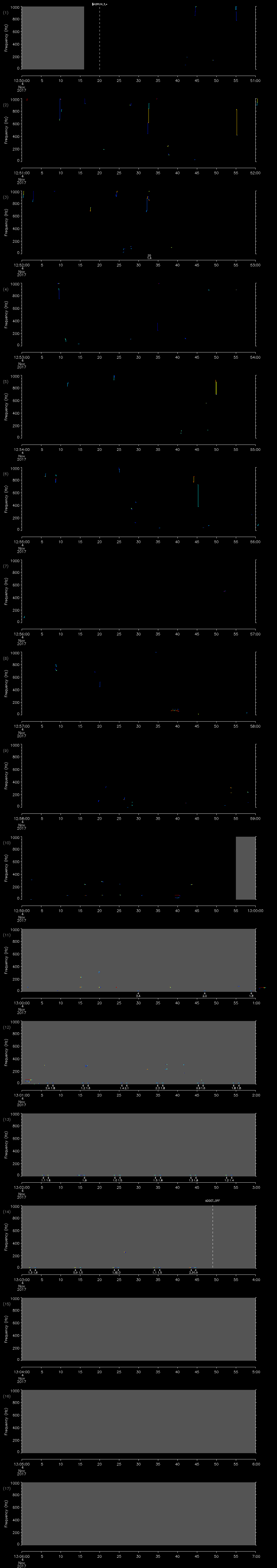 - MUTEON: the hydrophone is muted to assess system noise and to provide a time mark in the audio recording