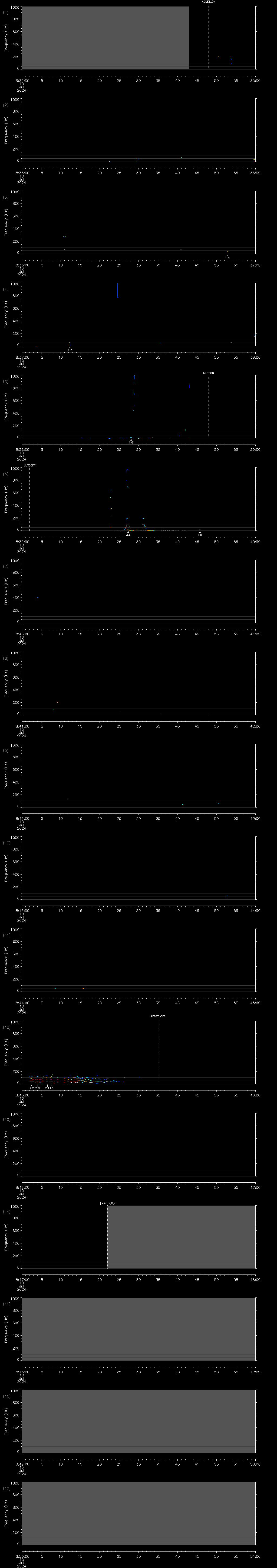 - MUTEON: the hydrophone is muted to assess system noise and to provide a time mark in the audio recording