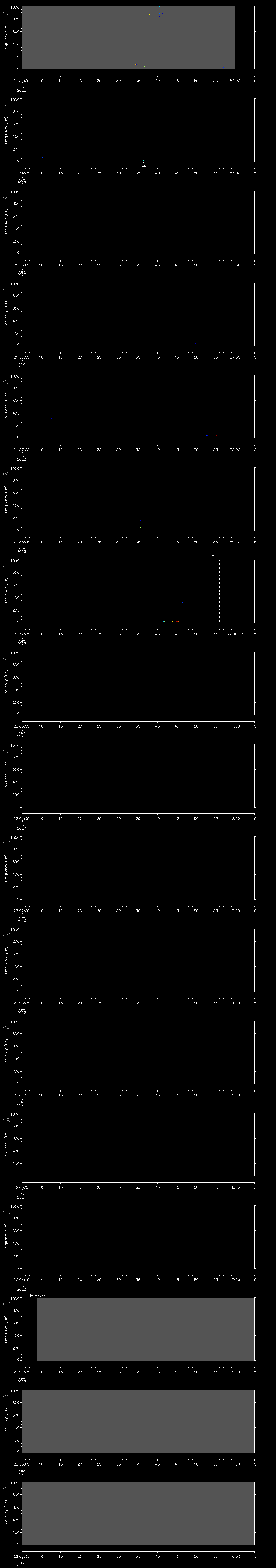 - MUTEON: the hydrophone is muted to assess system noise and to provide a time mark in the audio recording
