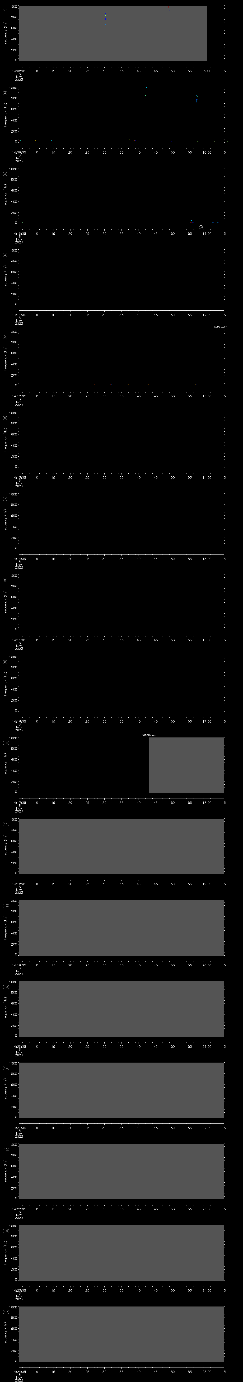 - MUTEON: the hydrophone is muted to assess system noise and to provide a time mark in the audio recording