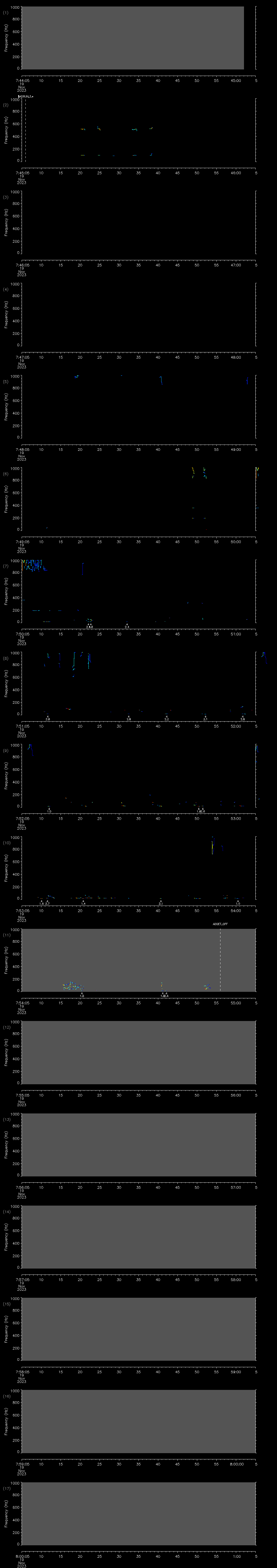- MUTEON: the hydrophone is muted to assess system noise and to provide a time mark in the audio recording