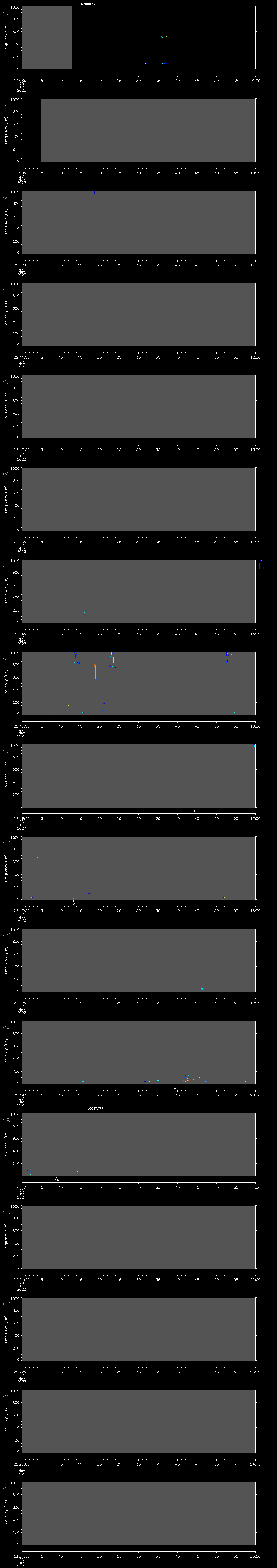 - MUTEON: the hydrophone is muted to assess system noise and to provide a time mark in the audio recording