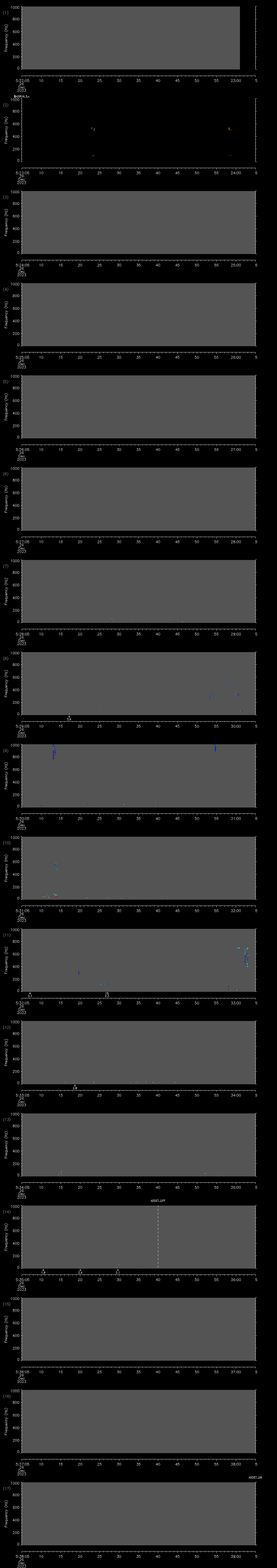 - MUTEON: the hydrophone is muted to assess system noise and to provide a time mark in the audio recording