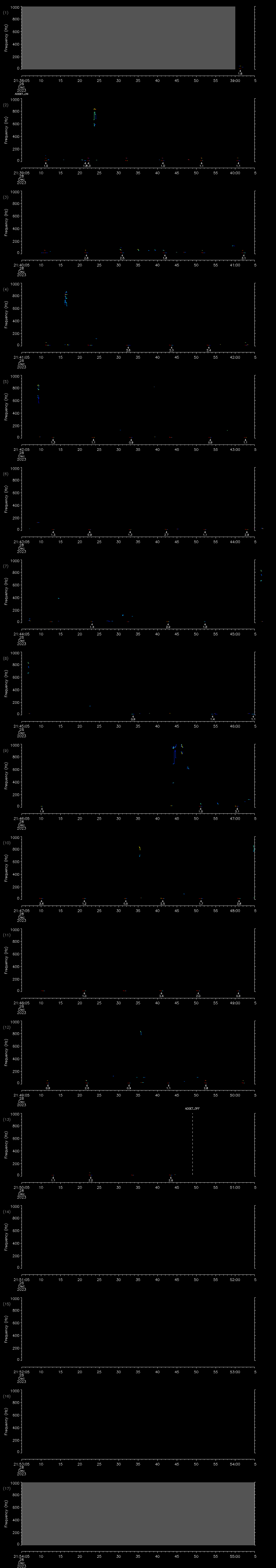- MUTEON: the hydrophone is muted to assess system noise and to provide a time mark in the audio recording