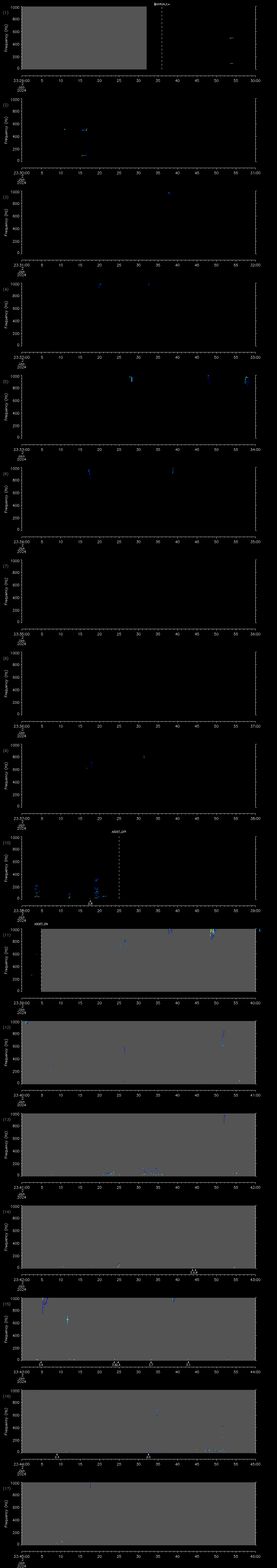 - MUTEON: the hydrophone is muted to assess system noise and to provide a time mark in the audio recording