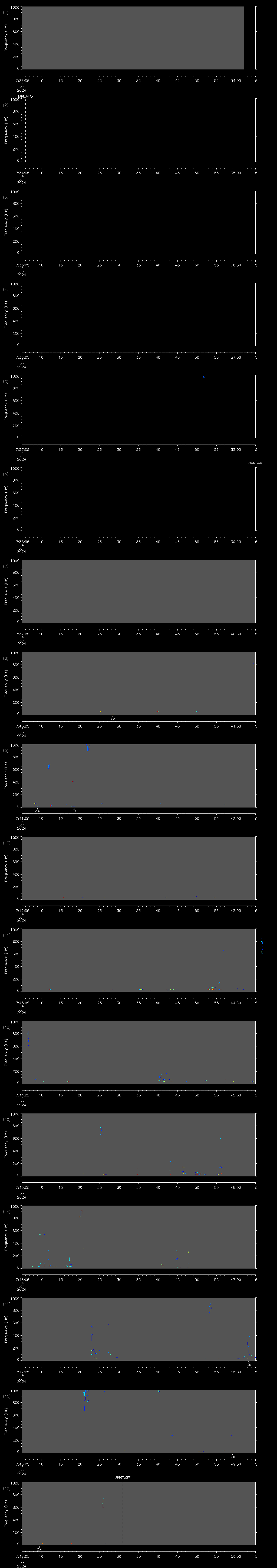- MUTEON: the hydrophone is muted to assess system noise and to provide a time mark in the audio recording